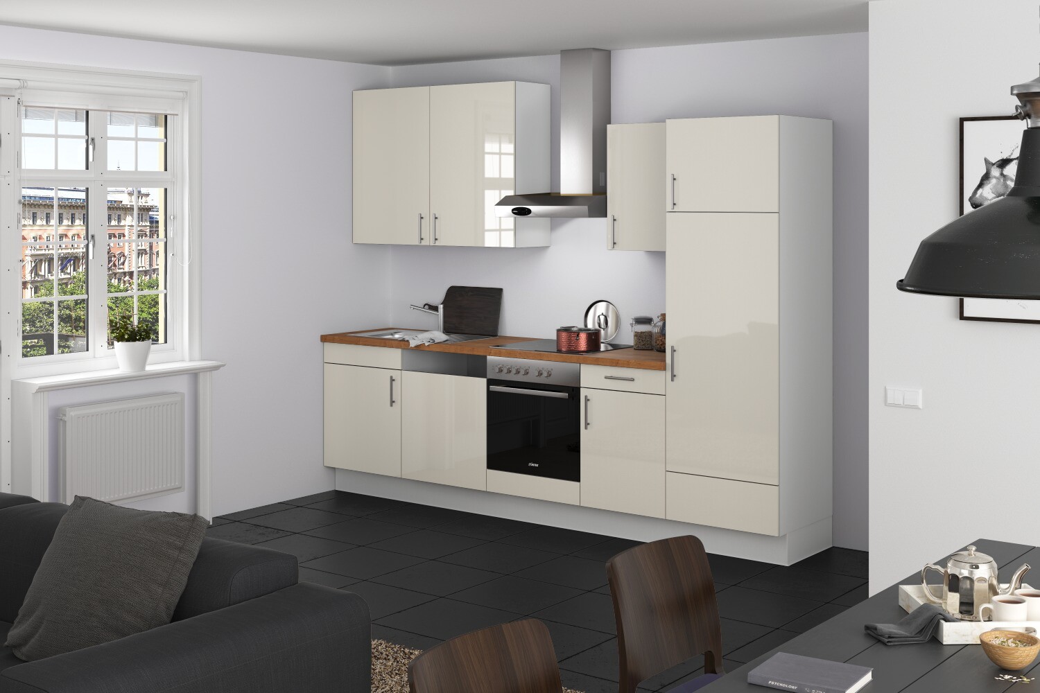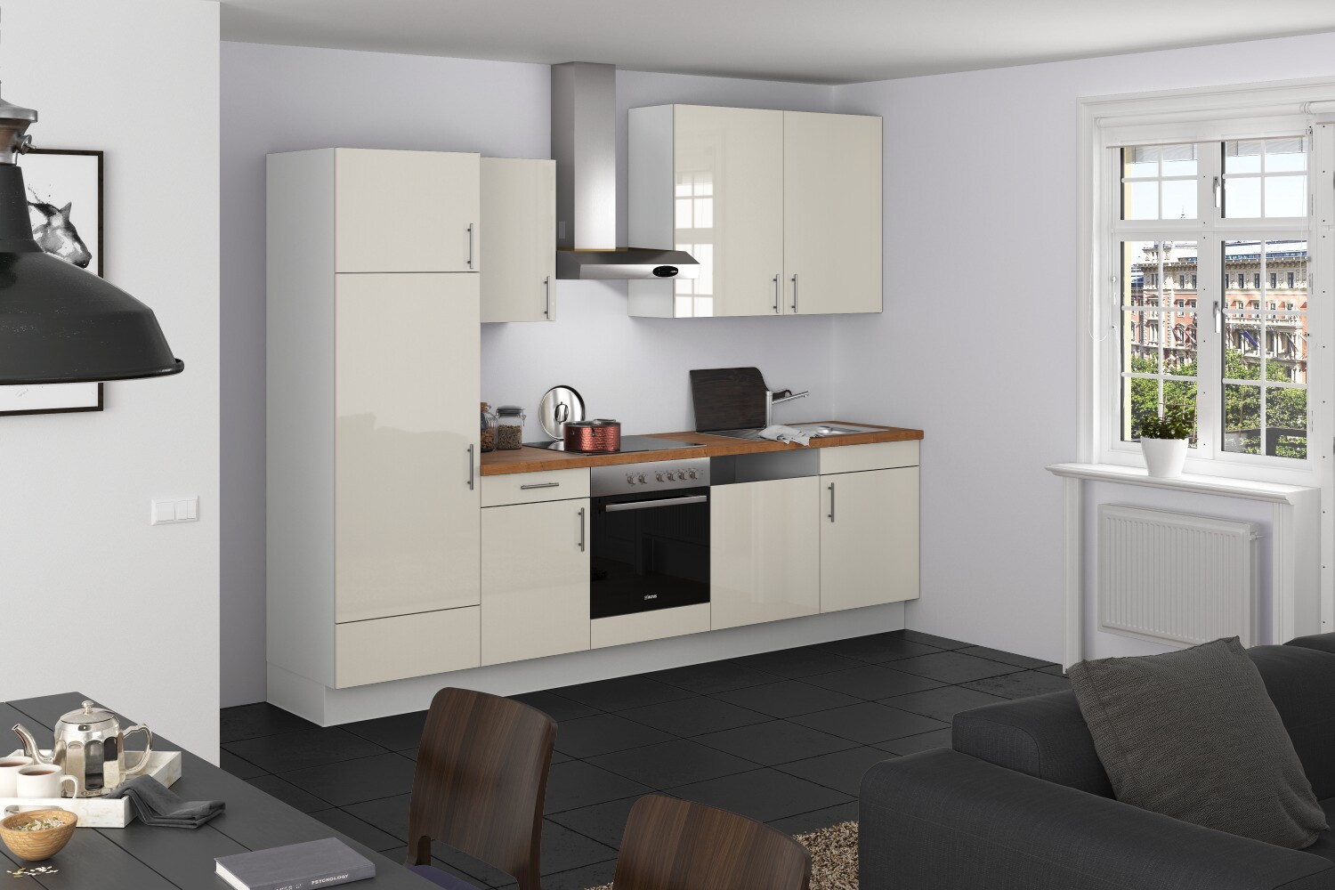 Прямая кухня Мокка 290 см магнолия глянцевый/альпийский белый