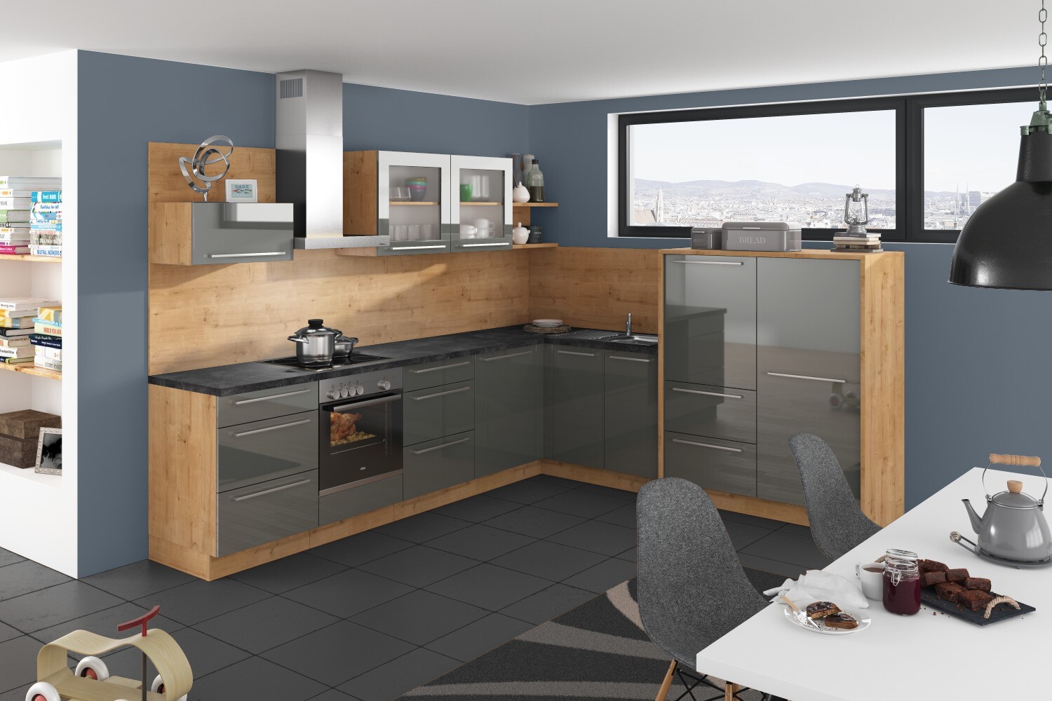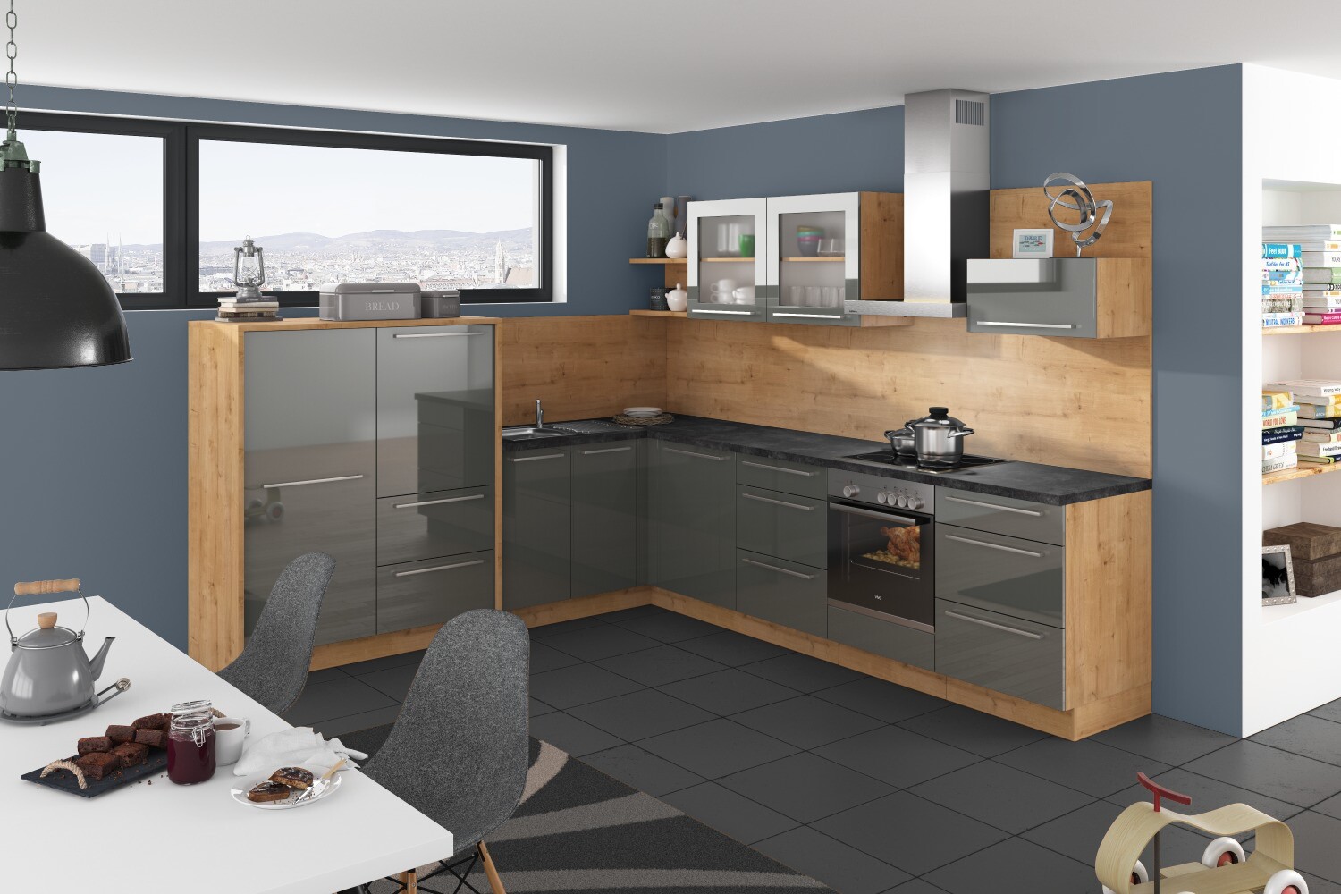 Угловая кухня Соната 305/270 см кварц серый глянцевый/дуб шале